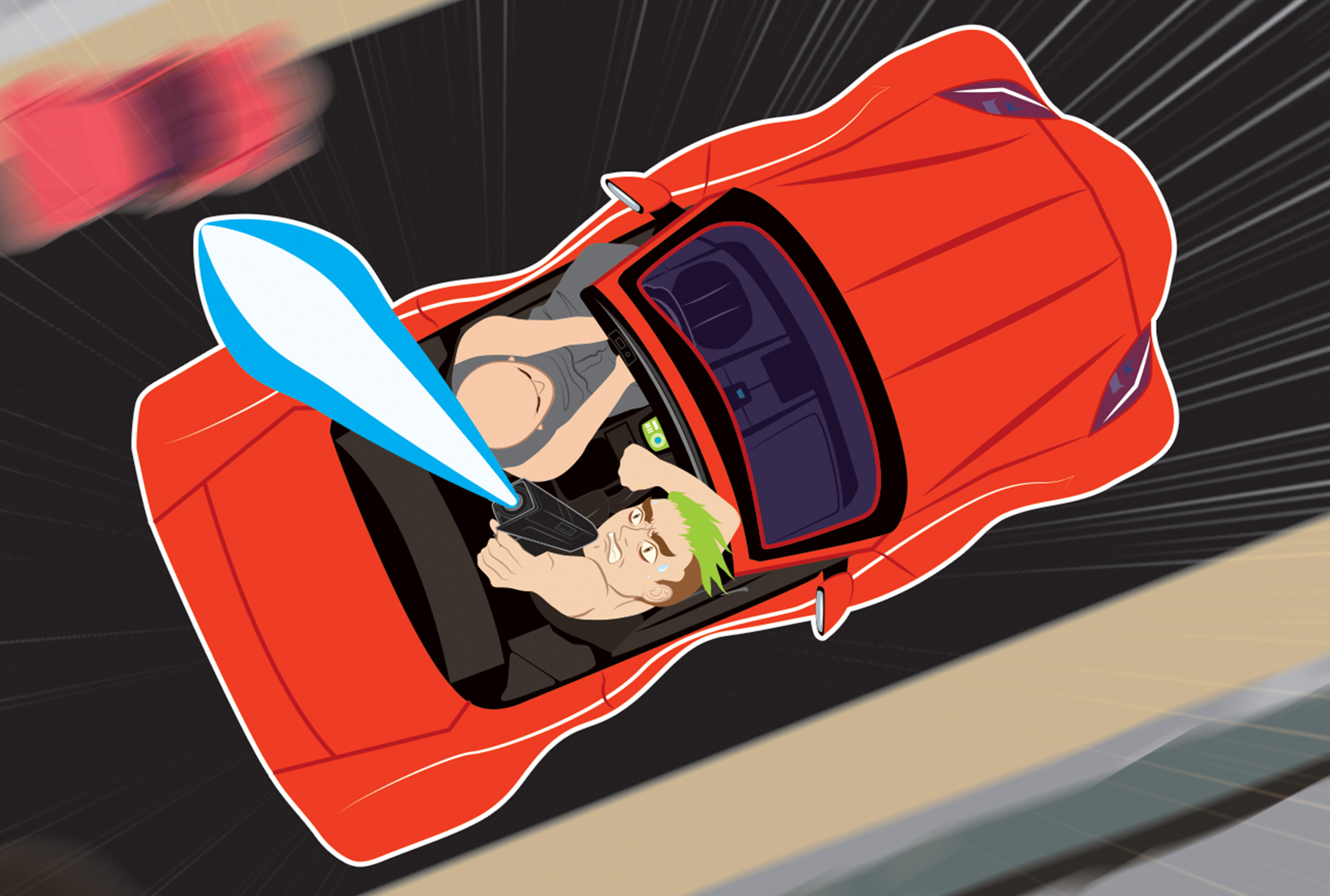 He quickly rummaged through the car for a spare gun. Once in his possession, his apparent excitement made him drop it. He pressed the alarmed driver to step on the gas, pointing out their possible death sentence. The driver took notice of the form, and sped through traffic, hoping to stay out of its range.